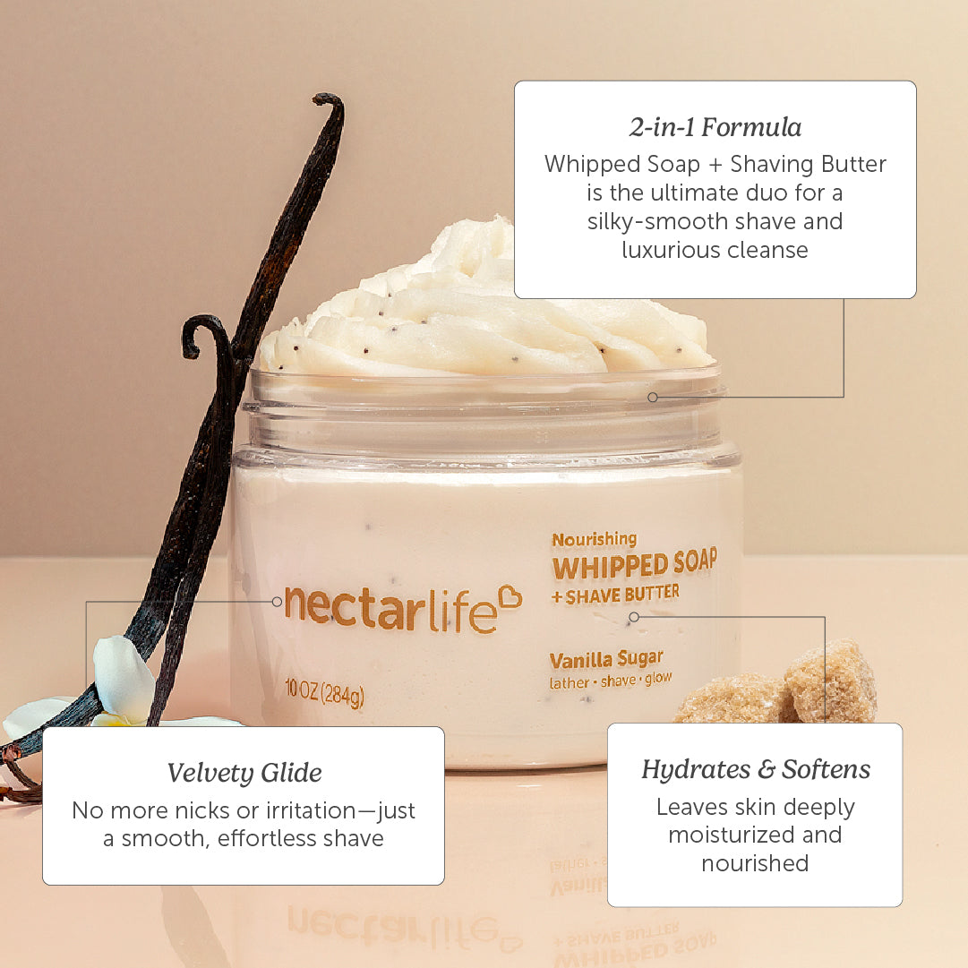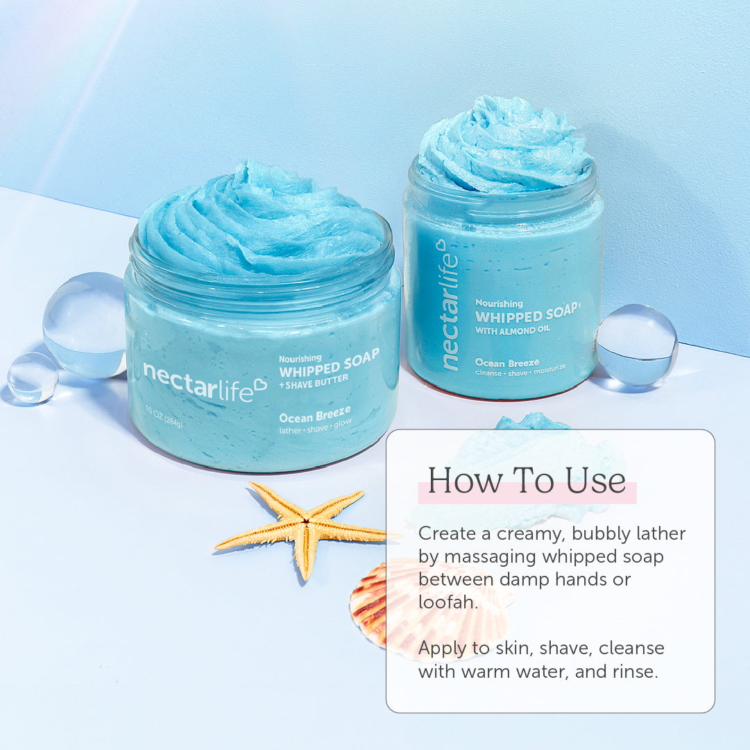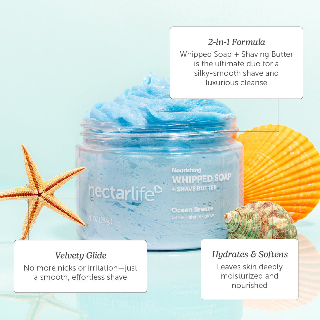 Upgrade your self-care routine with our award-winning Nourishing Whipped Soap—a luxurious 2-in-1 formula that doubles as a rich shaving cream and creamy cleanser, now in a 10 oz jumbo size. Recently scoring multiple honors at the Global Green Beauty Awards 2024, this vegan formula glides on effortlessly, leaving your skin soft, hydrated, and nourished. Whether you’re starting your day or winding down at night, this multitasking treat turns your routine into a mini escape.