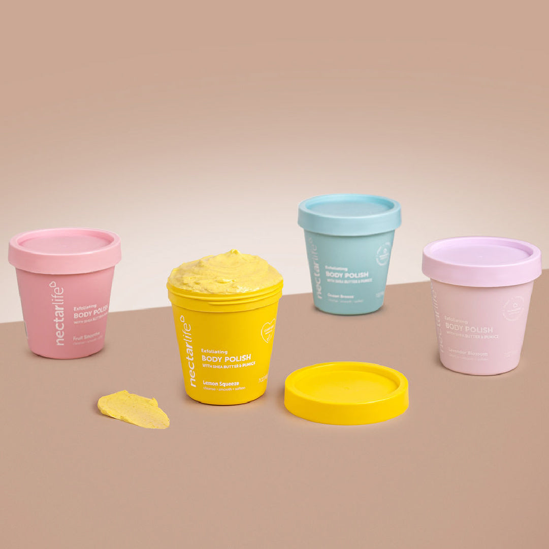 Get ready to indulge in the Body Polish of your dreams! Our beloved Yogurt Body Peel has been reimagined with a fresh, cute look now with 2 additional ounces for a total of 7 ounces! Gently exfoliate and reveal softer, smoother skin with this playful and rejuvenating product. With this exfoliating body peel, say bye-bye dead skin, and hello adorable and smooth skin!