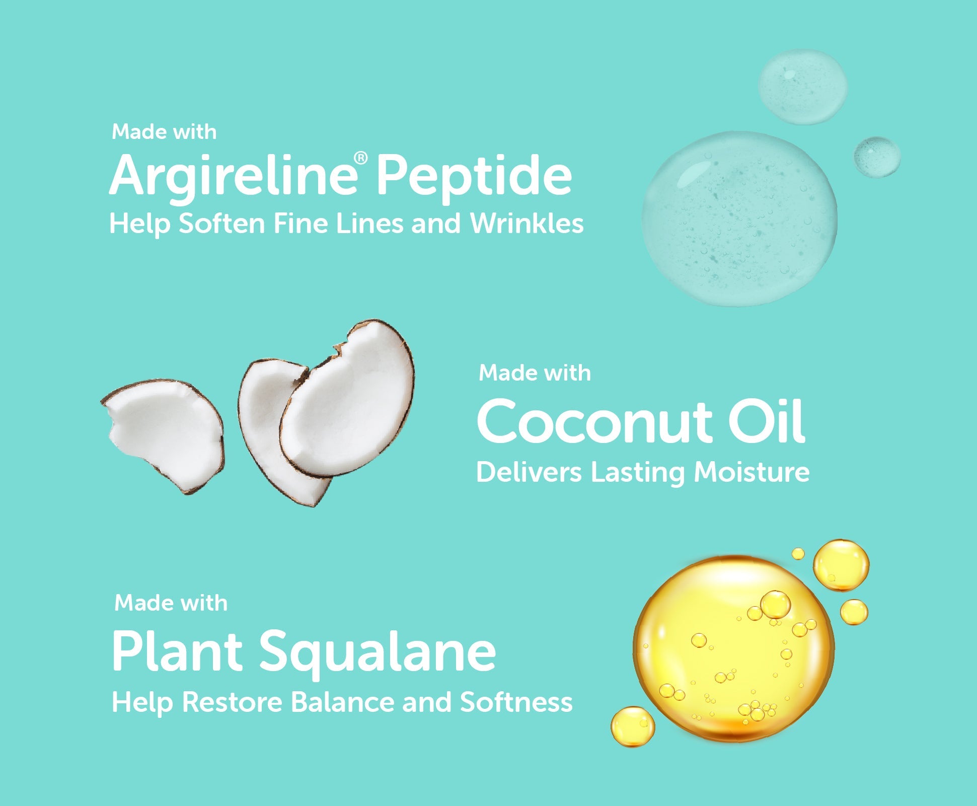 Wake up to deeply replenished, smoother-looking skin with this rich overnight treatment. Formulated with a targeted peptide complex, plant-derived squalane, and lightweight coconut oil, this nourishing cream works while you sleep to support visible skin renewal and lasting hydration. A blend of botanical emollients and plant-based hydrators helps condition and lock in moisture, creating a breathable barrier for overnight care. The result: soft, balanced, radiant skin by morning.