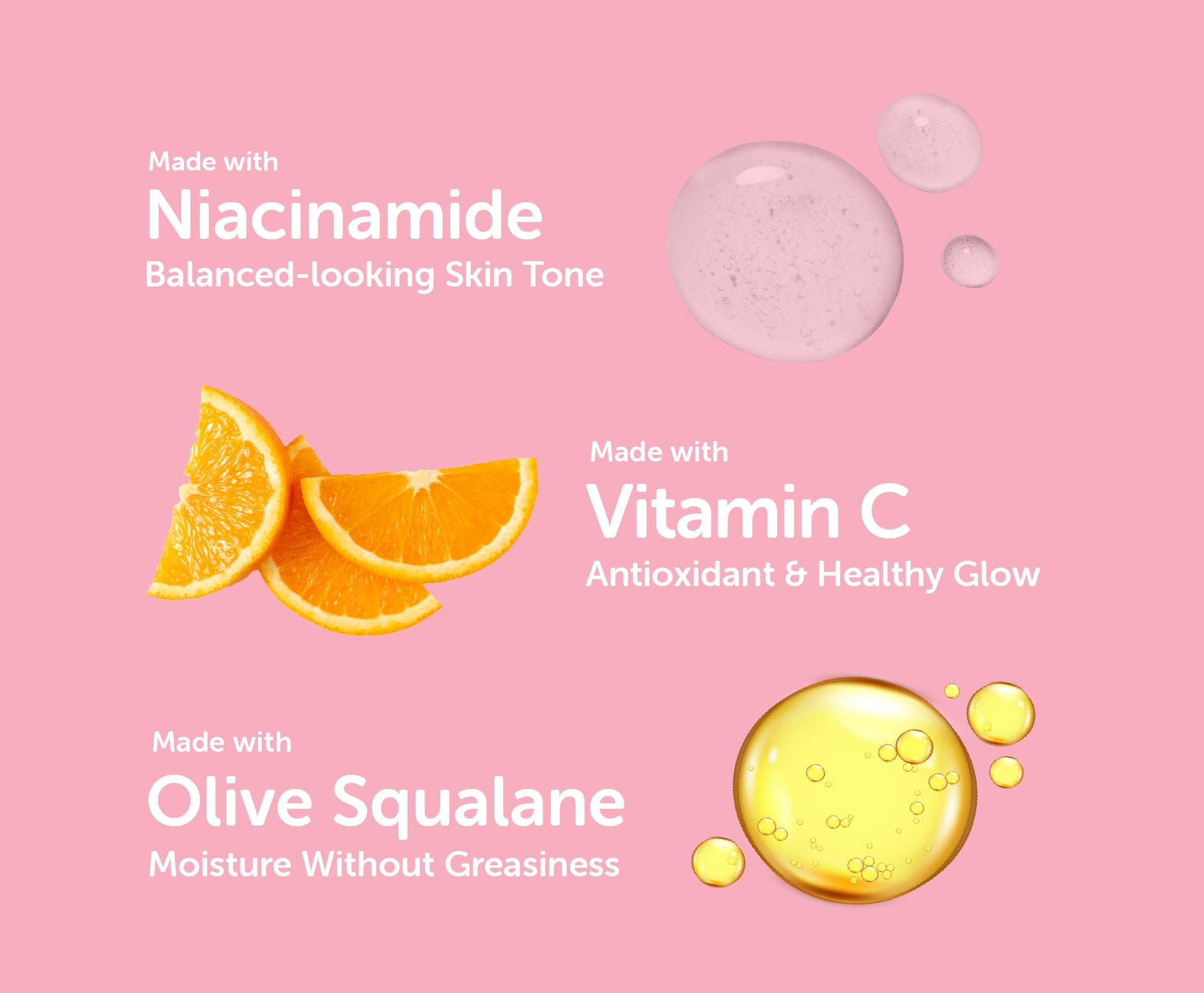 Ingredients: Sodium Bicarbonate, Citric Acid, Niacinamide, Calcium Ascorbate, Squalane (Olive Derived), Glycerin, Steareth-20, N-Hydroxysuccinimide, Chrysin, Palmitoyl Tripeptide-1, Palmitoyl Tetrapeptide-7, Polysorbate 80, Tapioca Starch, Aqua (Water), Aniba Rosaeodora (Rosewood) Wood Oil, Caprylic/Capric Triglyceride, Mica, Iron Oxide, Tin Oxide, Titanium Dioxide