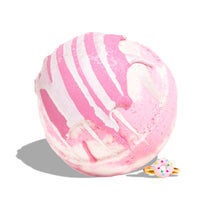 Once the tub is full, drop the bomb in the water and enjoy the show! You'll see the bomb fizz and bubble and swirl around the tub leaving colorful trails of skin-loving oils and salts behind it.