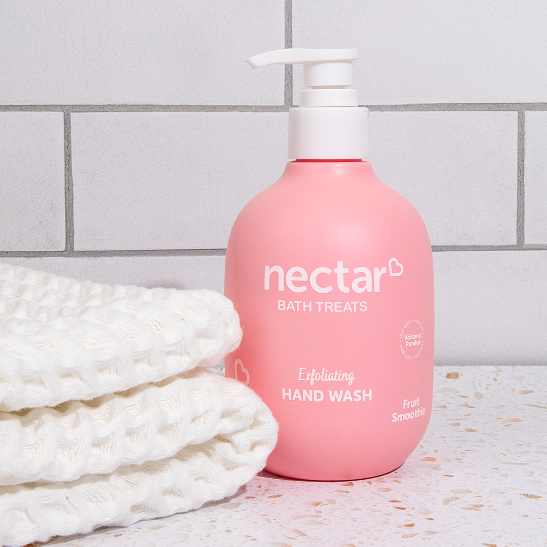 Fruit Smoothie Hand Wash: Aqua (Water), Sodium Cocoyl Isethionate, Glycerin, Cocamidopropyl Betaine, Pumice, Butyrospermum Parkii (Shea) Butter, Stearic Acid, Caprylic/Capric Triglyceride, Parfum (Fragrance), Tocopheryl Acetate, Sucrose, Ricinus Communis (Castor) Seed Oil, Tapioca Starch, Phenoxyethanol, Caprylyl Glycol, Citric Acid, Simmondsia Chinensis (Jojoba) Seed Oil, Xanthan Gum